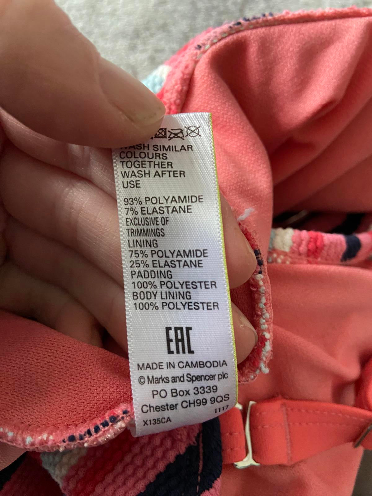 M&S Size 16 Pink & Navy Striped Textured Plunge Neck One Piece Swimsuit