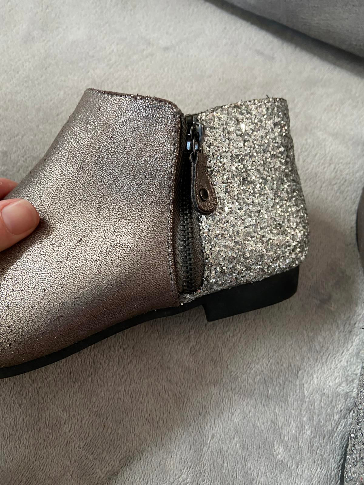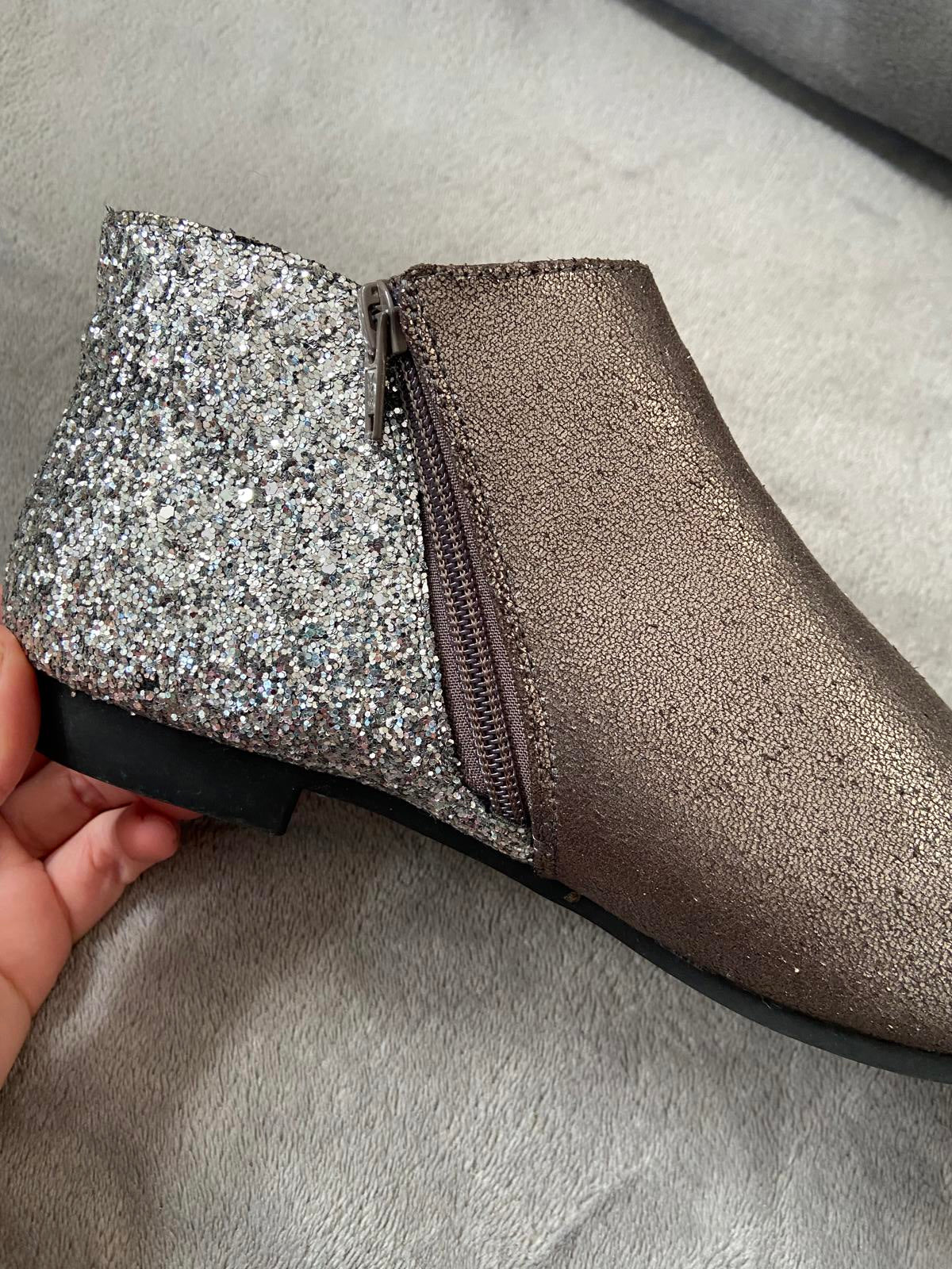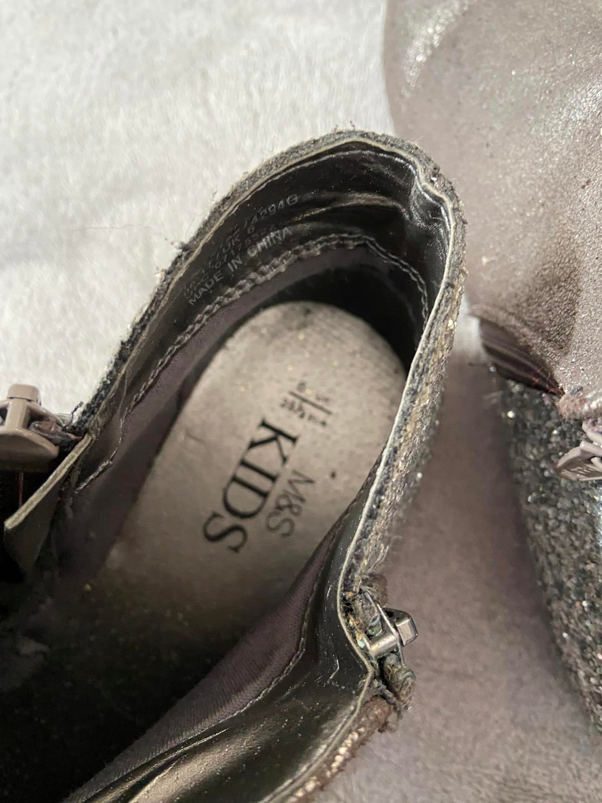 M&S Size 6 Silver Metallic Glitter Ankle Boots Double Side Zip Party Shoes