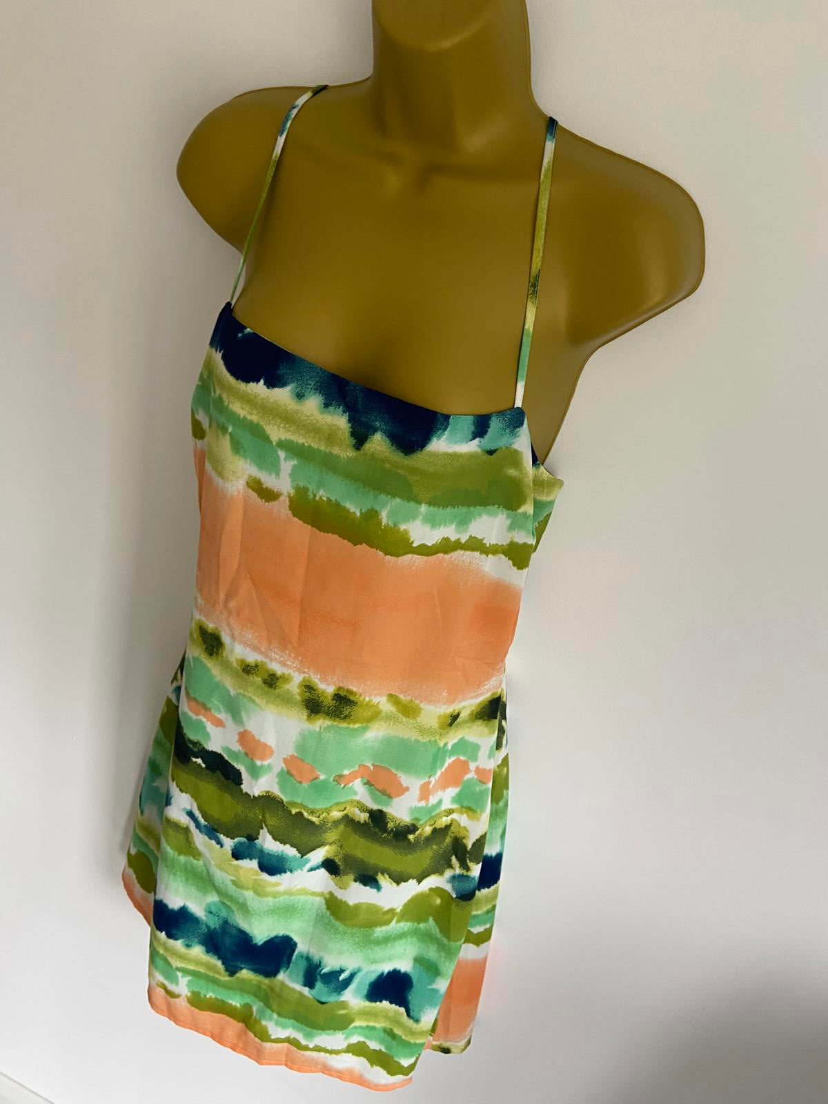 Nasty Gal Size 14 Blue Green Orange Abstract Stripe Strappy Back Mini Dress